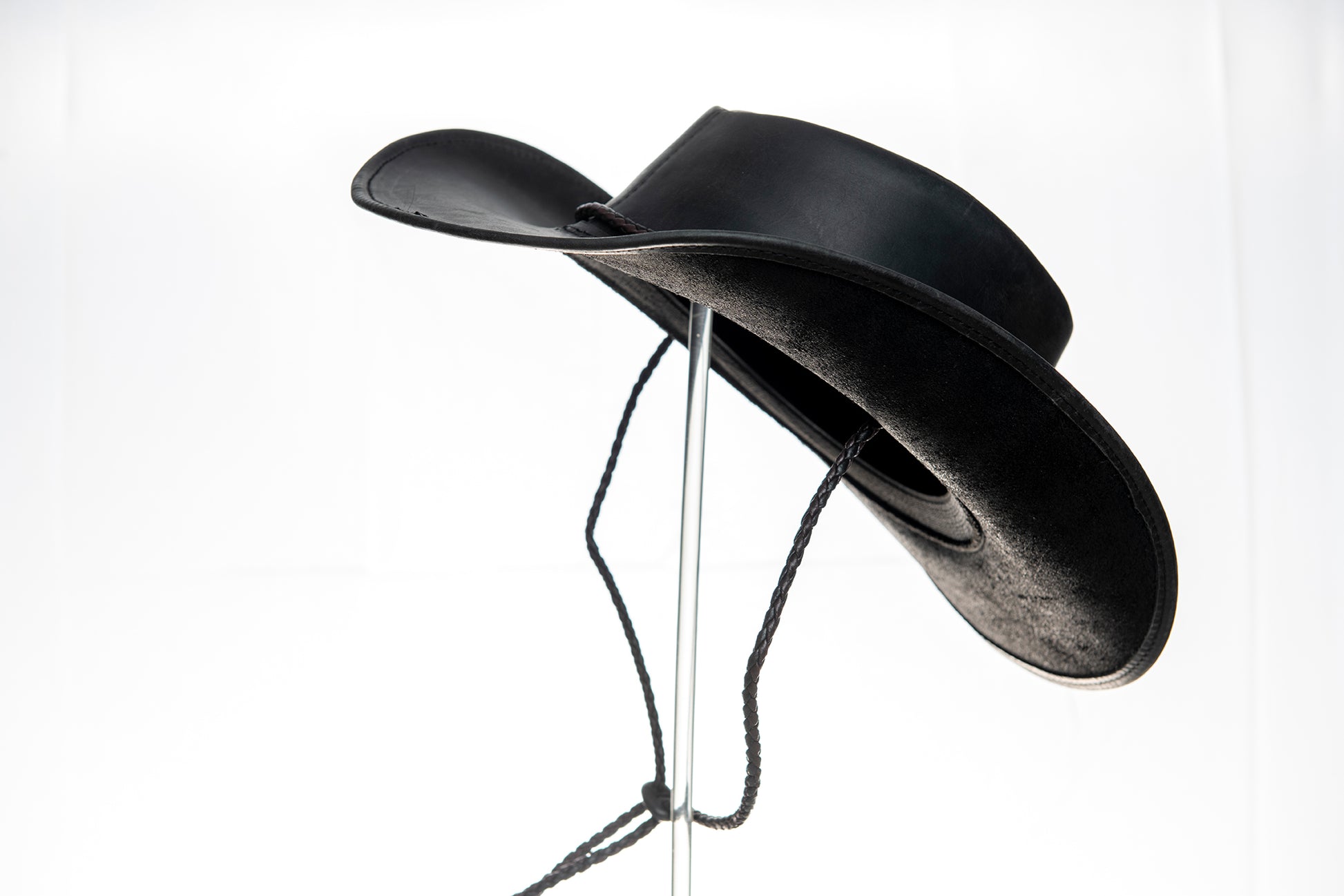 „Montana Black“ – Westernhut aus glattem Echtleder mit klassischer Flechtverzierung
