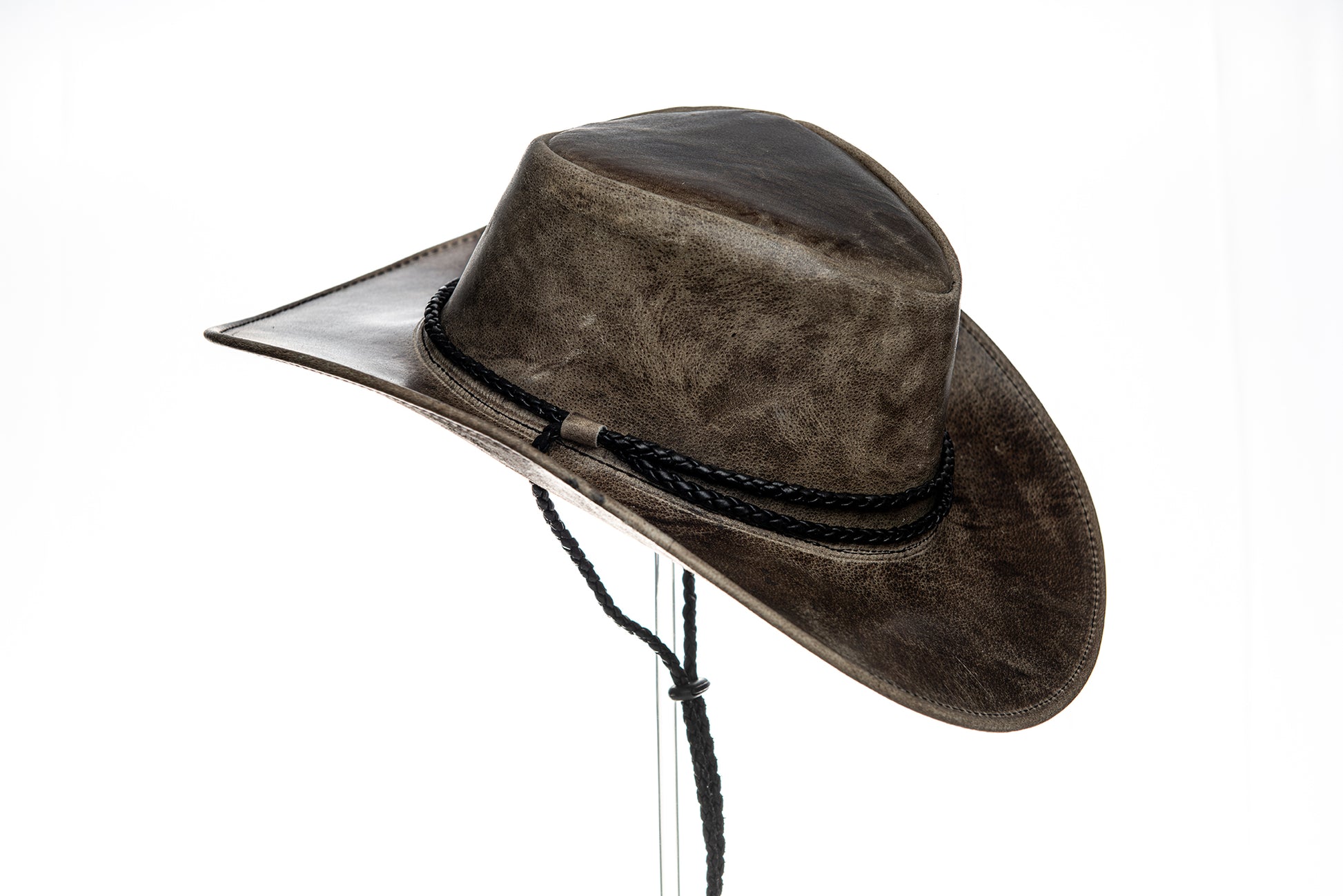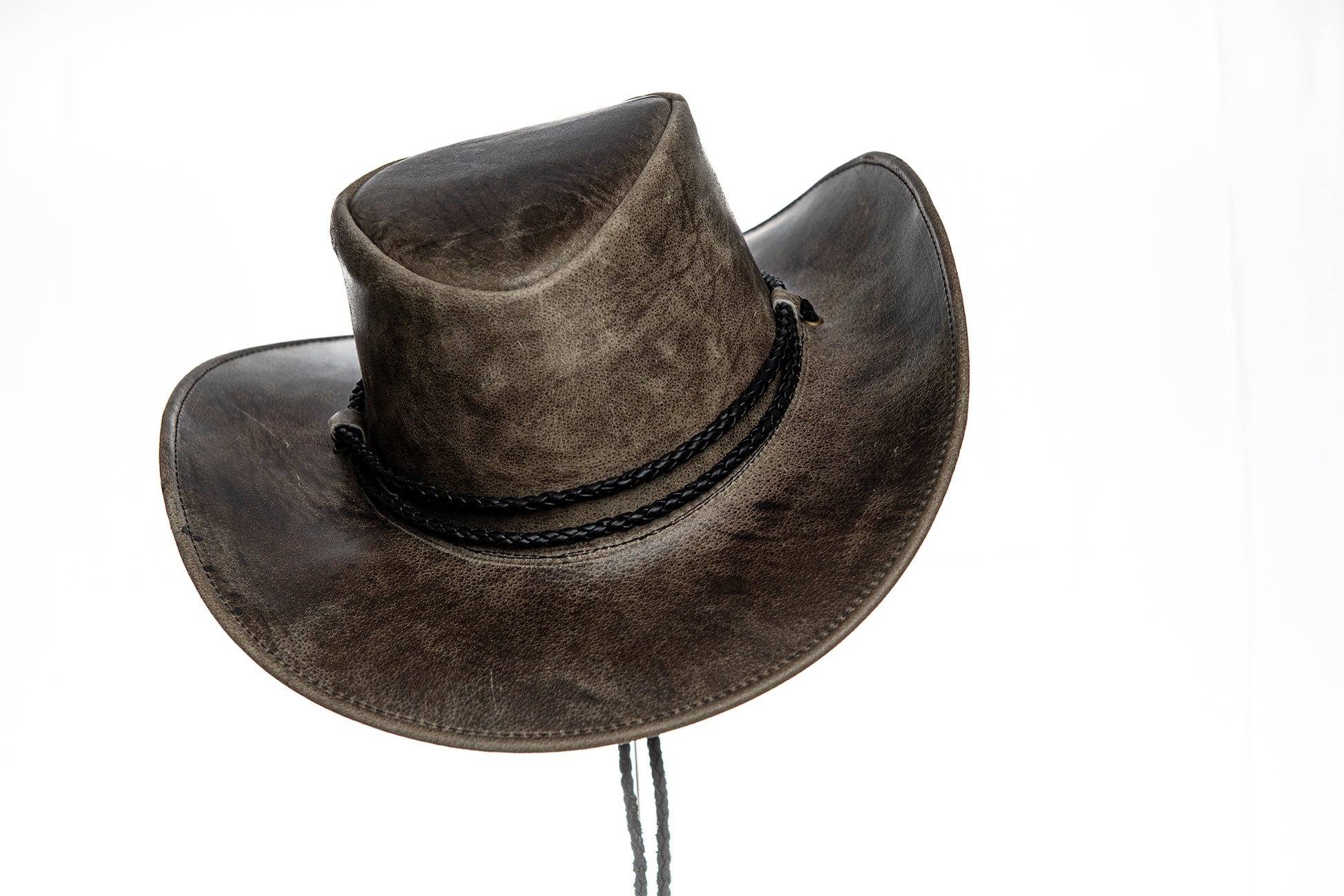 „Montana Grey“ – Westernhut aus Crazy Horse Leder in rauchigem Grau