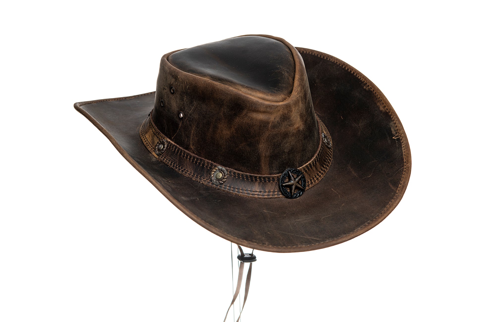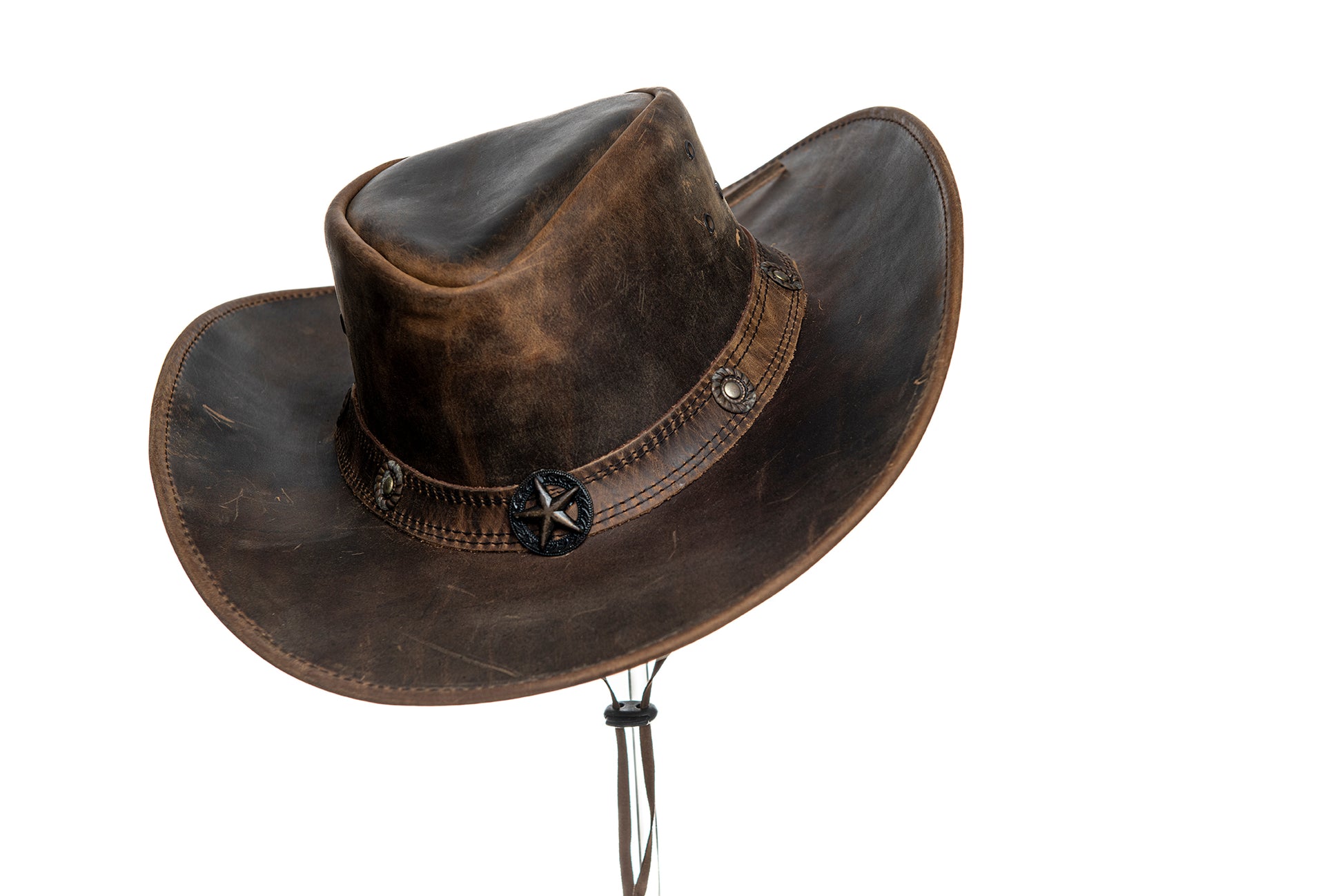 „Sierra“ – Cowboyhut aus Crazy Horse Leder mit Westernstern & Patina-Finish